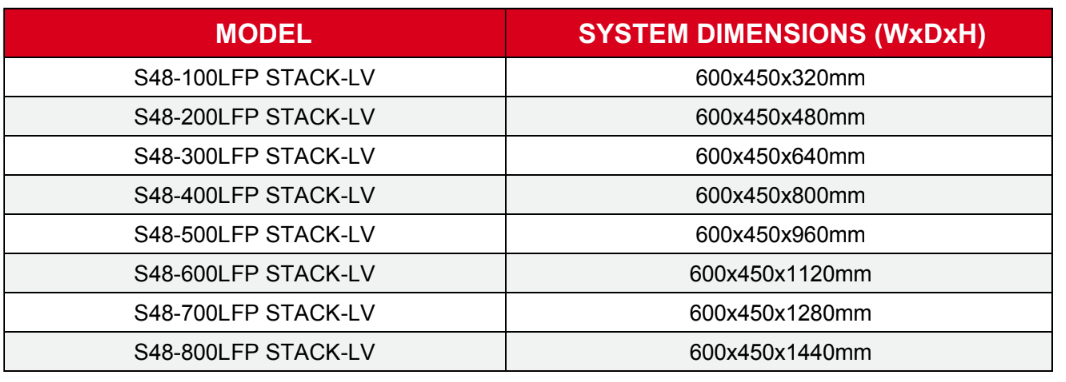 Rolls S48-100LFP STACK-LV batteries can be combined in parallel to increase system capacity and power delivery. Rolls S48-100LFP STACK-LV batteries can support up to 8 battery modules in parallel and is certified to UL 9540 & UL 1973 and tested to the unit level standard of UL 9540A under the following product names with overall system