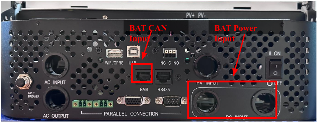 Ensure all S48-100LFP STACK-LV batteries are properly interconnected via Link in/out ports and setup properly for DIP switch addresses before external CAN bus communication connections. See the Appendix B in the S48-100LFP STACK-LV Battery Installation Guide.